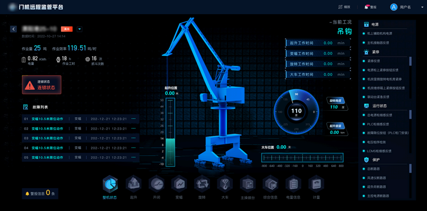 实现门机作业全流程数字化管控,提升作业效率,减少故障停机时间,方便管理人员实时掌握门机运行与作业情况。