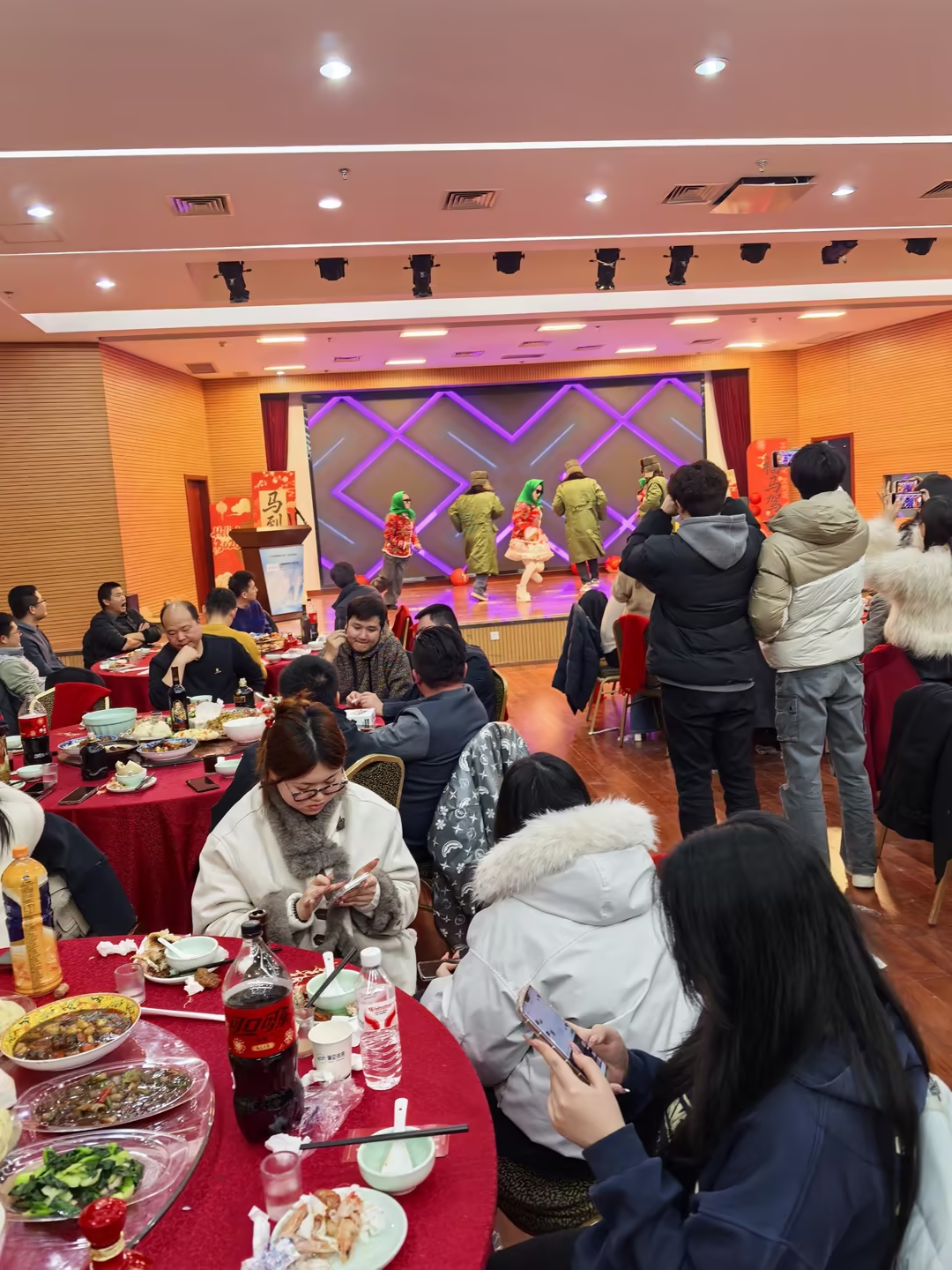 年会现场的节目精彩纷呈,高潮迭起。员工们自编自演的舞蹈、歌曲、小品等节目,充分展现了他们的多才多艺和团队协作精神。穿插的趣味游戏众人积极参与,现场气氛越来越热烈。